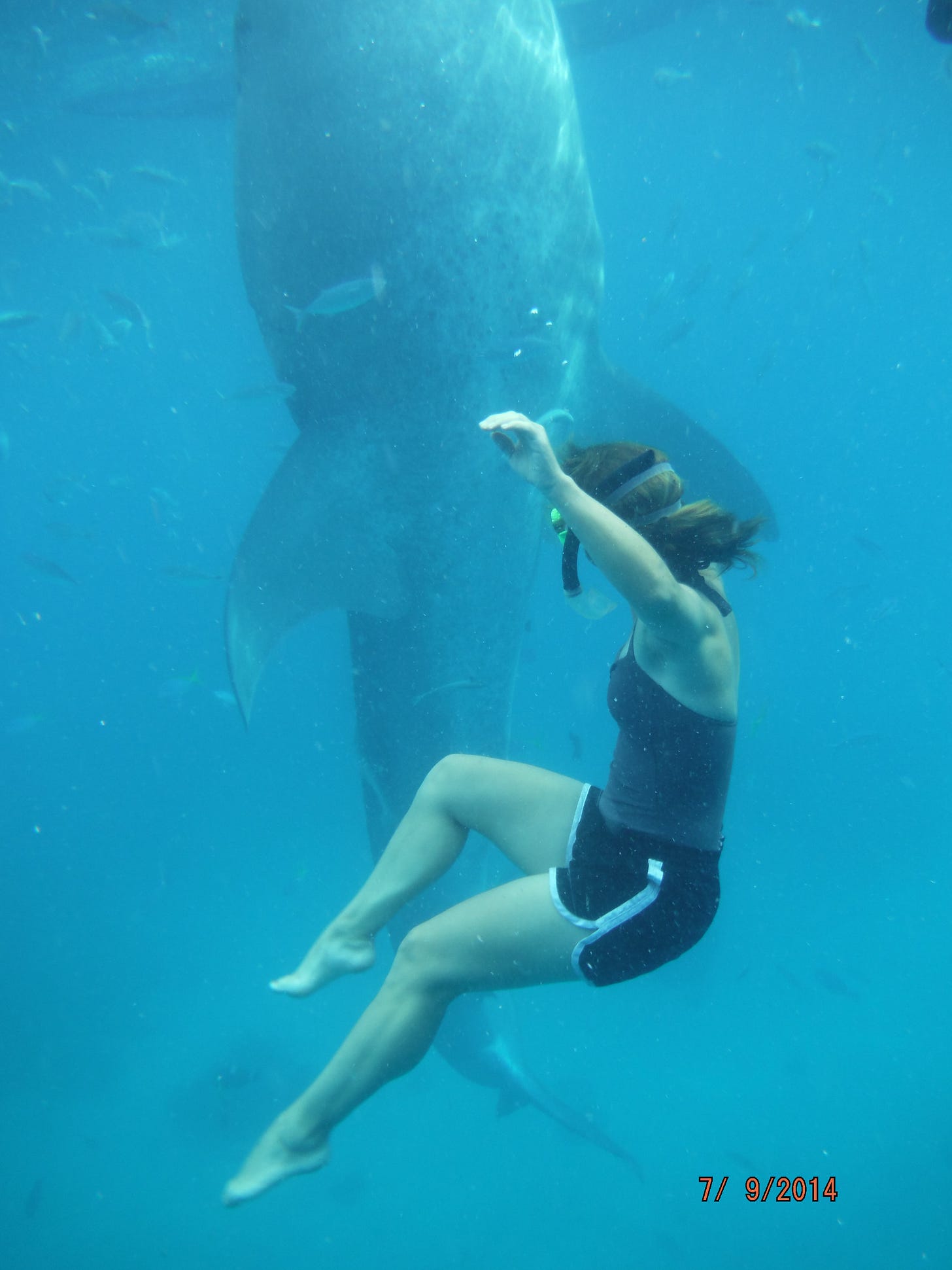 And turtles, and pgymy seahorses, and maybe some stinging jellyfish. (It’s been a busy month and I bought a rash guard shirt at the very last minute; you’d think I would have been studying the SwimTrek packing list but instead I was writing, promoting, teaching, and coaching.)